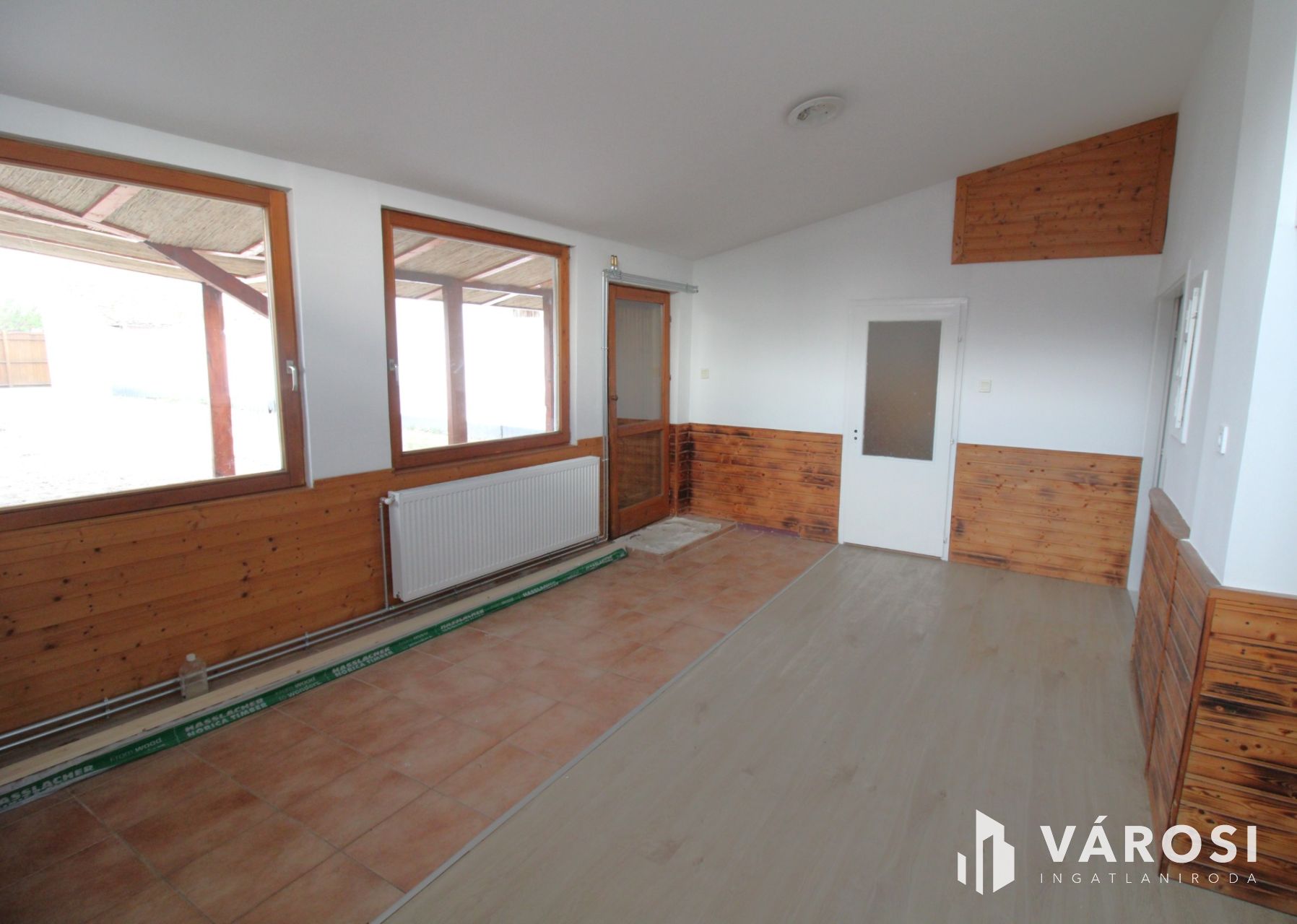 A 61 m2 nagyságú lakórészben két, külön bejáratú szoba, tágas, napfényben úszó amerikai-konyhás nappali, valamint egy fürdőszoba WC-vel található. A nyílászárók műanyagok, hőszigeteltek. A villamos hálózat (16A) rézkábel, a tetőszerkezet áthajtott. Gerendák ,cseréplécek cserélve lettek. A használati melegvizet és az épület fűtését egy új, kondenzációs gáz kazán biztosítja. Az épület falazata vegyes (tégla és vályog).