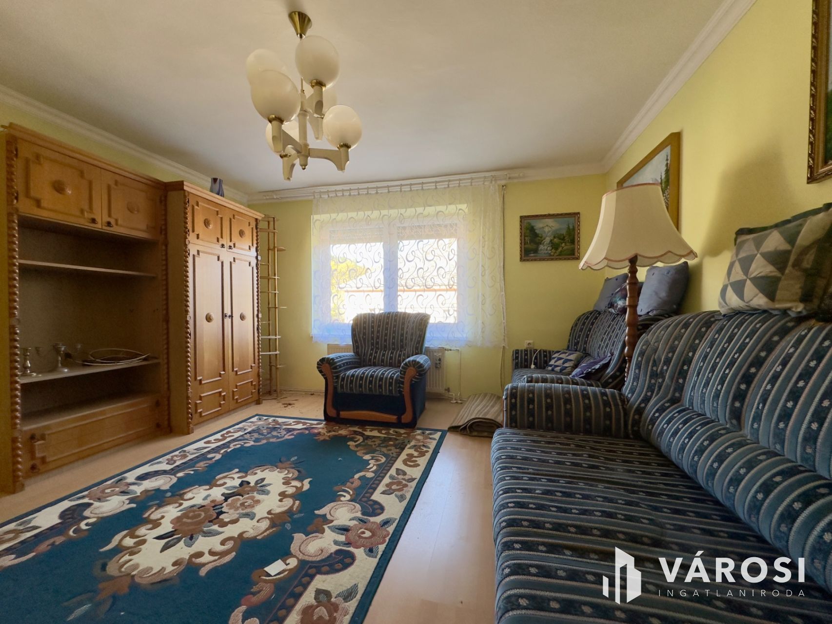 Helyiségei: az alsó szinten konyha, étkező, kamra, külön nyíló W.C., közlekedő, kazánház, garázs (elektromos kapuval), a felső szinten 4 szoba, közlekedő, 2 fürdőszoba.
