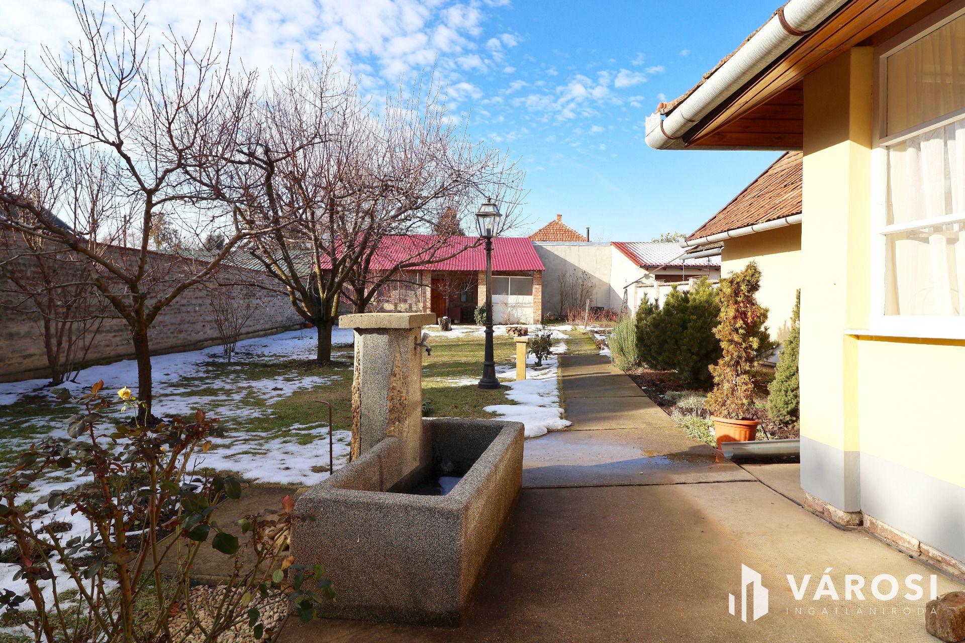 - Parkosított udvar, melléképületek, fedett gépkocsi beálló