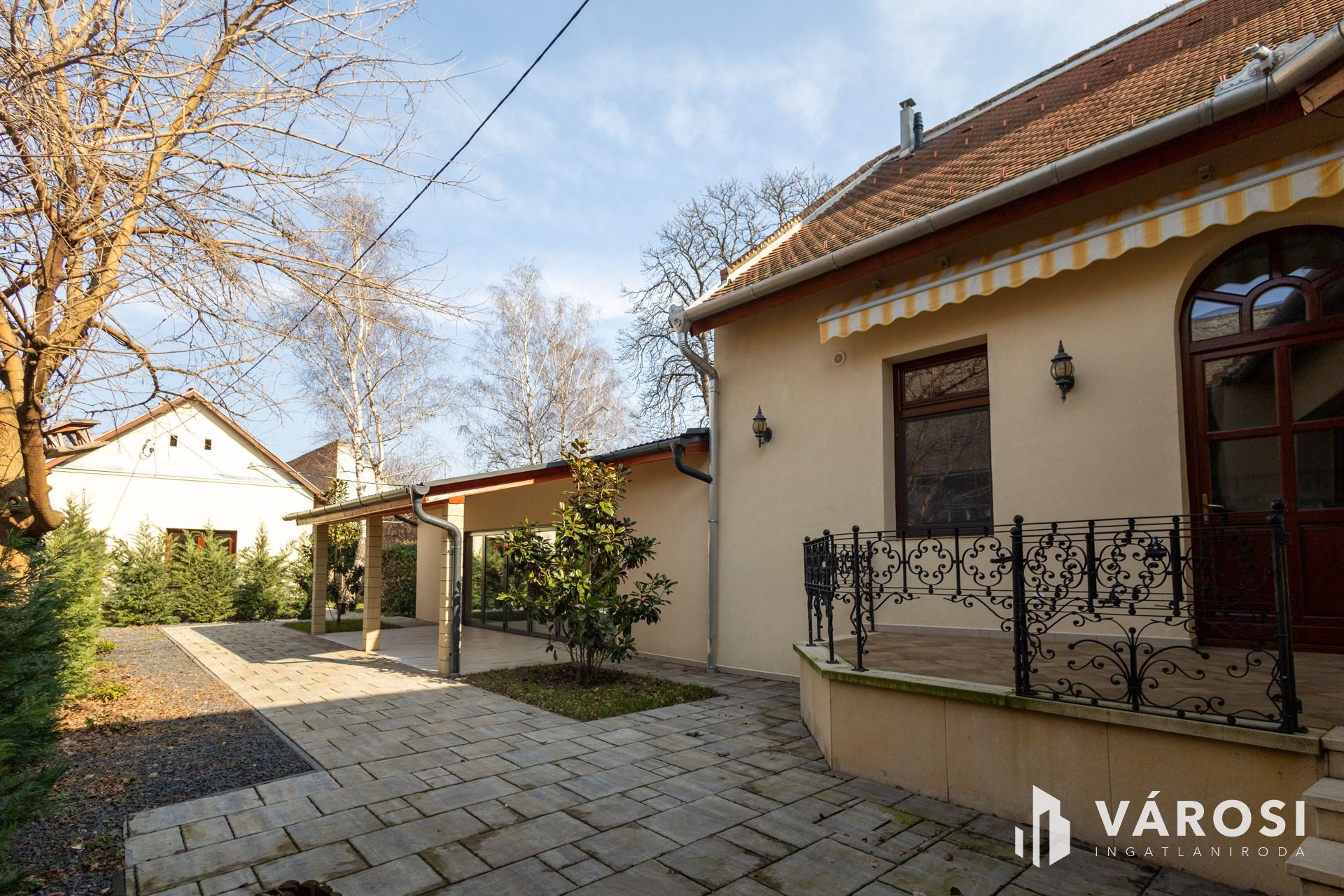 A teljeskörűen felújított, impozáns polgári ház 3 tágas szobával és konyhával rendelkezik. A gyönyörű belső terek prémium anyaghasználattal készültek, minden részletében a minőséget tükrözik. Az egyik, üvegportálos szoba, amelyhez egy fedett terasz kapcsolódik, különleges hangulatot áraszt, padlófűtéssel biztosítva a maximális komfortot. A fűtés központi rendszerű, radiátorokkal megoldva. Elektromos redőnyök, klímák és kiépített videokaputelefon rendszer növelik a kényelmet és a biztonságot.
