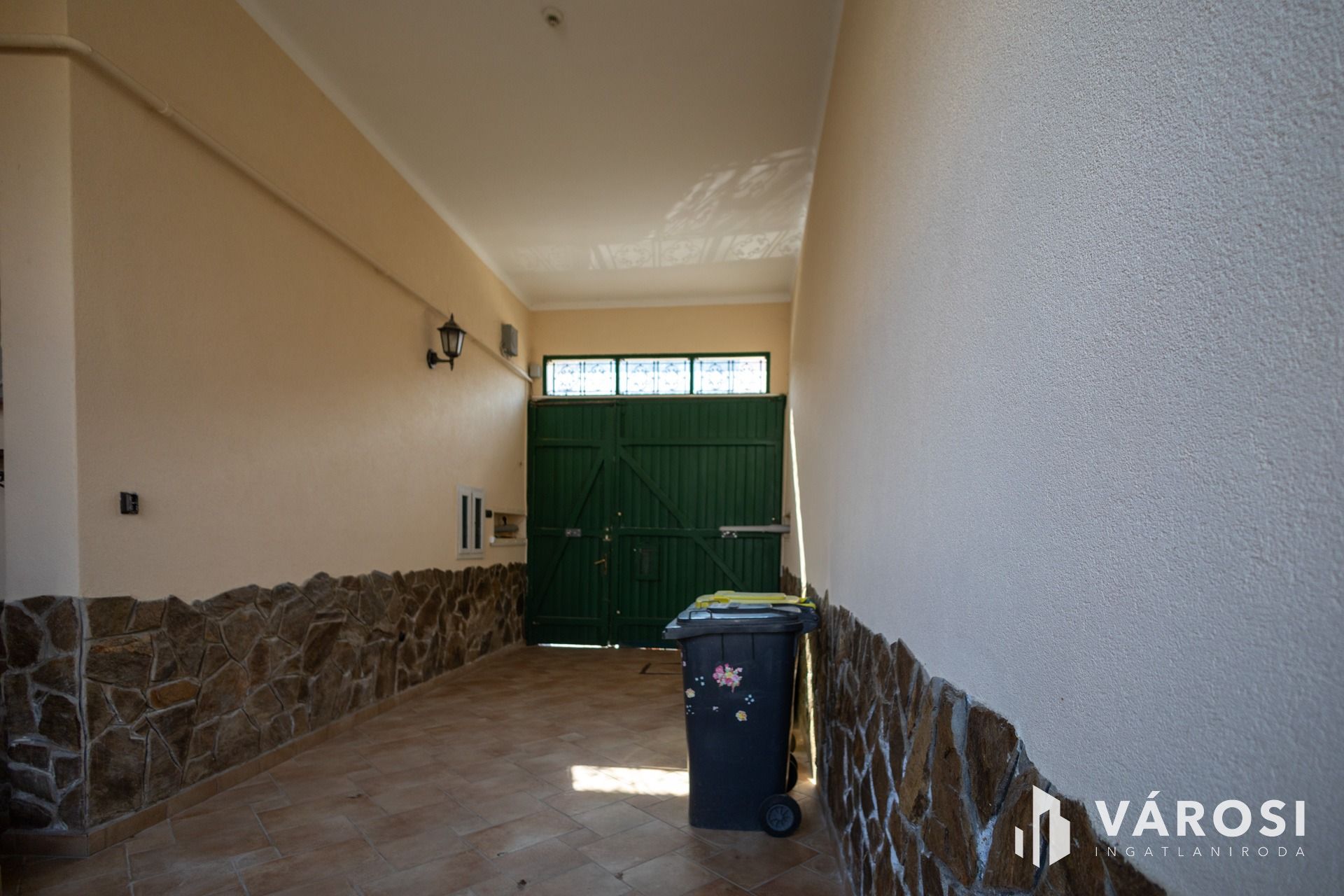 A házba száraz kapubejáró található, amely kényelmes beállási lehetőséget biztosít, elektromos nagykapuval ellátva.