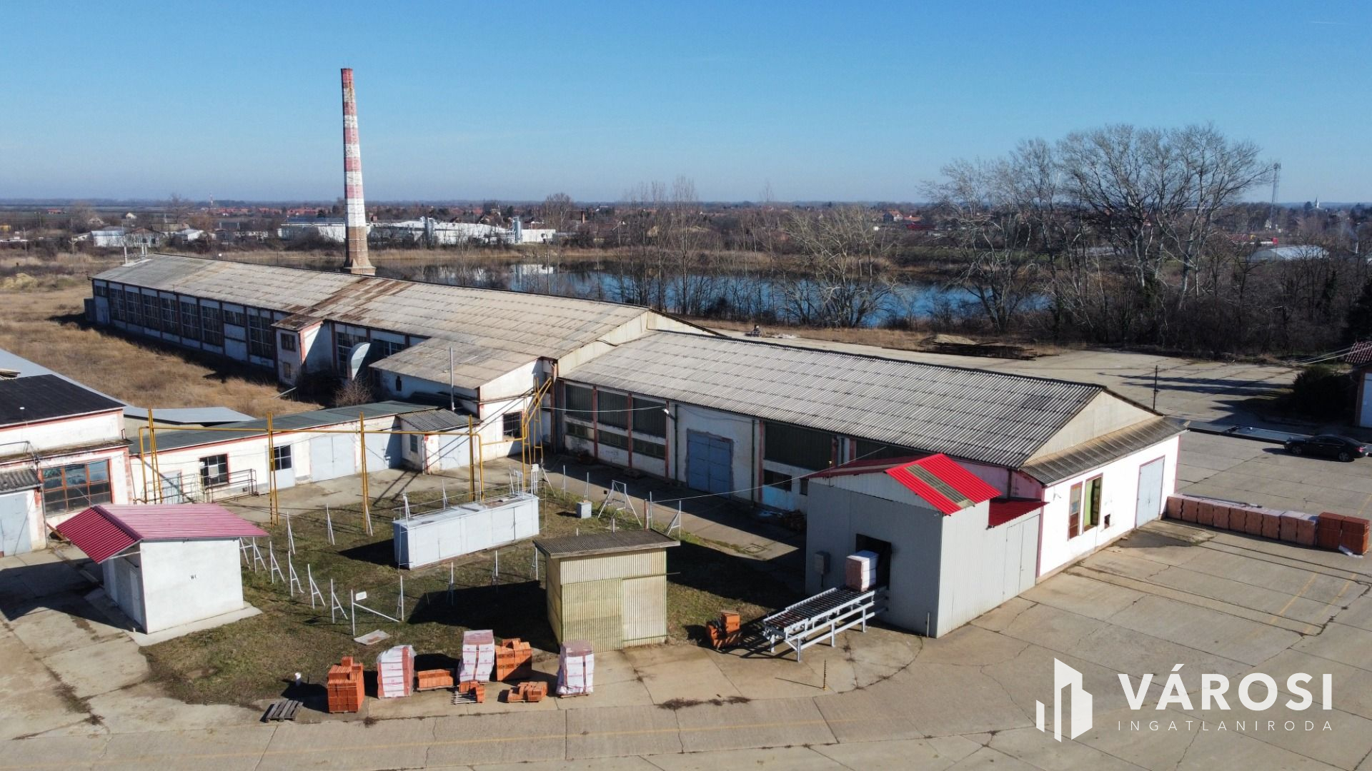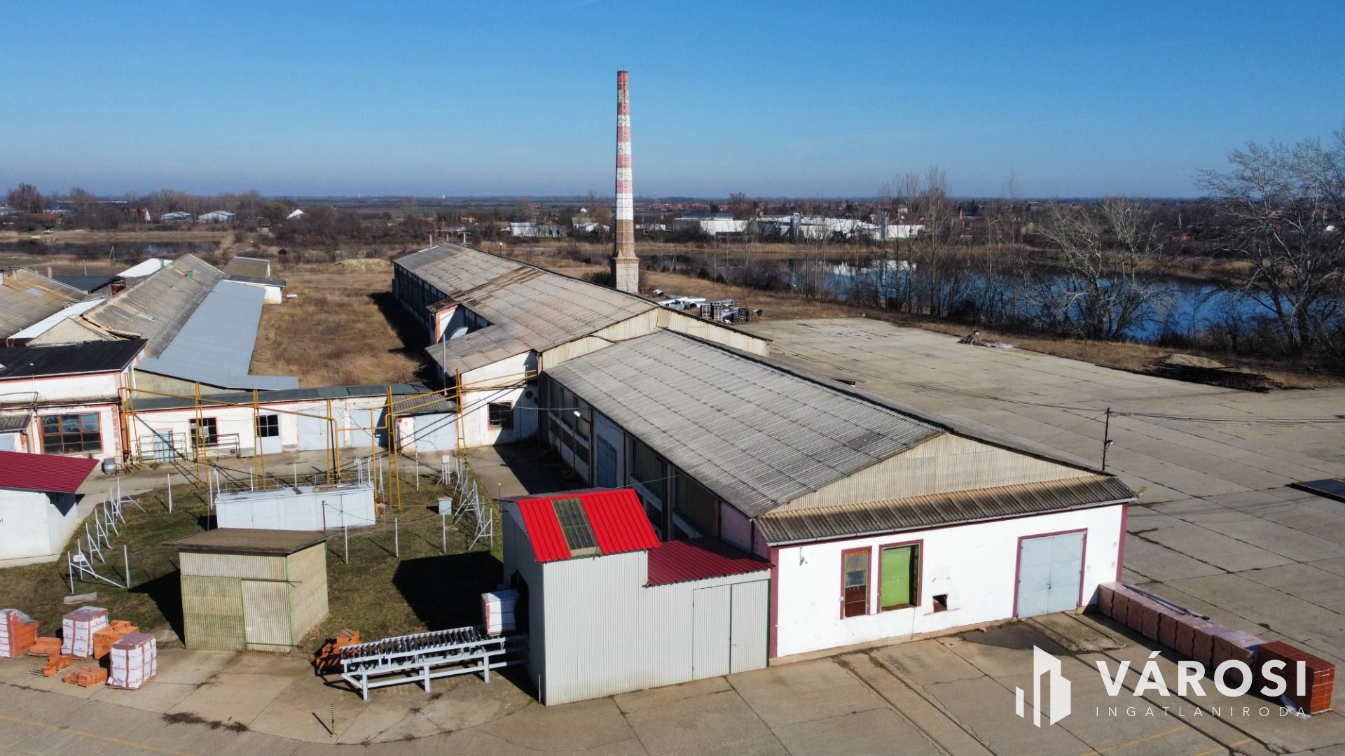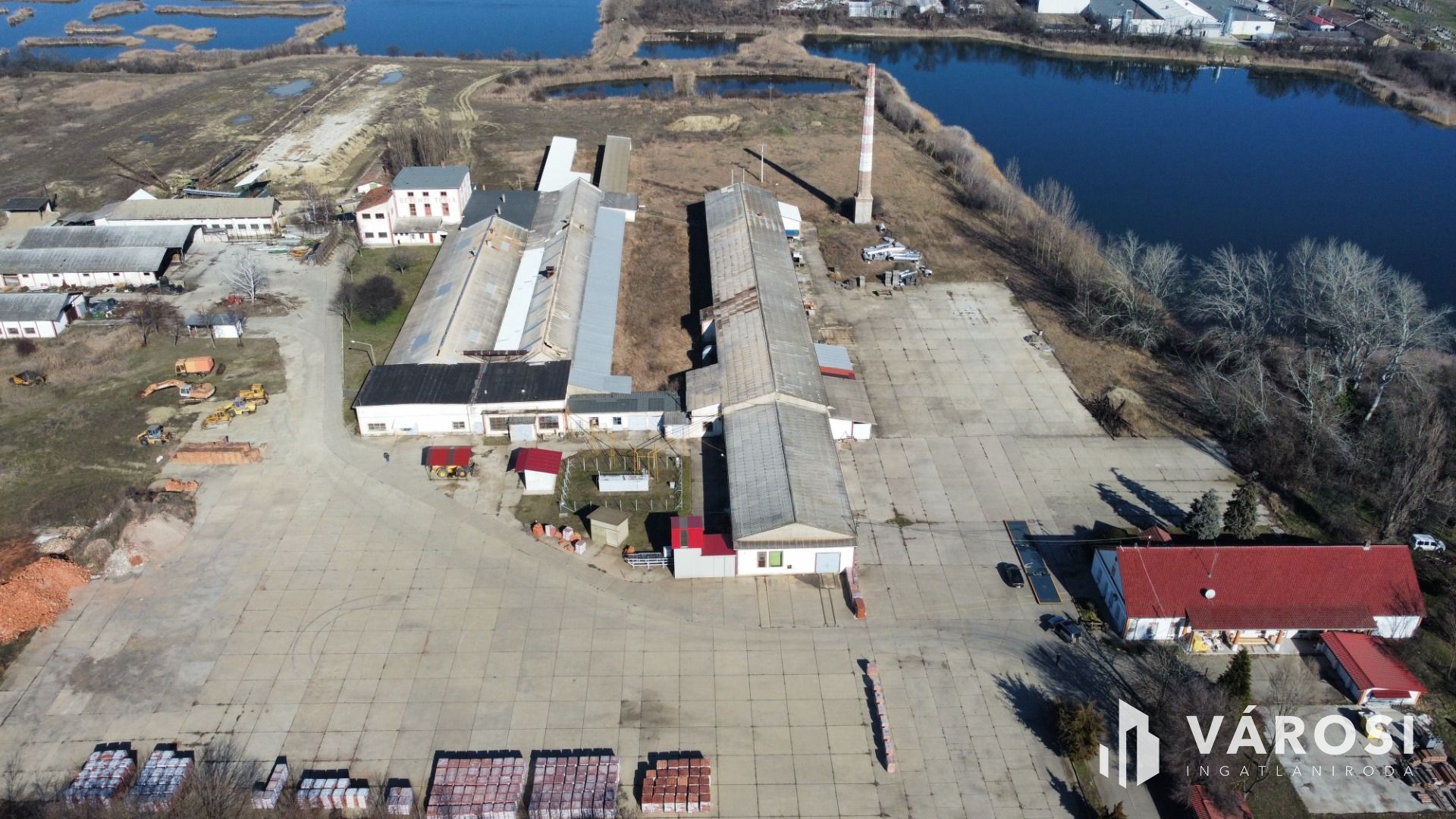 A téglagyár területén agyagbányák, bányatavak, üzemcsarnokok, irodaház, illetve egyéb kiszolgáló épületek, műhelyek találhatók, melyek összes beépített alapterülete 10.335 m2. A telephely nagy részben kerített, területén raktározás céljára kb. 10.000 m2 nagy teherbírású, betonozott térburkolat került kialakításra!
