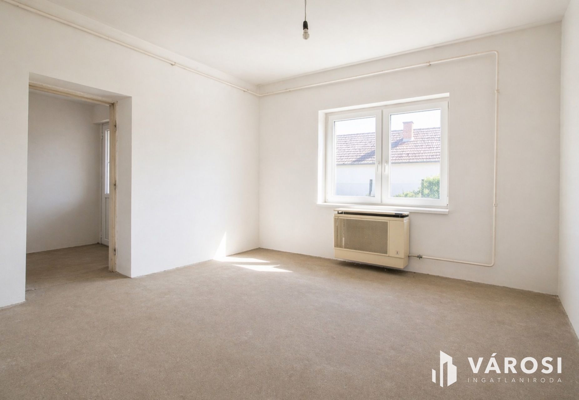 A fűtés jelenleg konvektoros rendszerrel részben megoldott, a nappaliban megtartásra került, így a további rendszer kialakítása szabadon tervezhető.