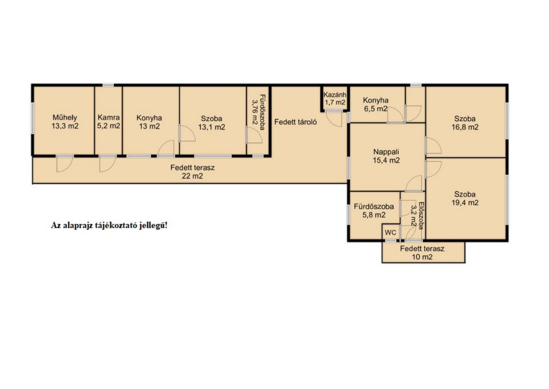 Főépület: Nappali, konyha, 2 szoba, fürdőszoba, előszoba, Wc, kamra.