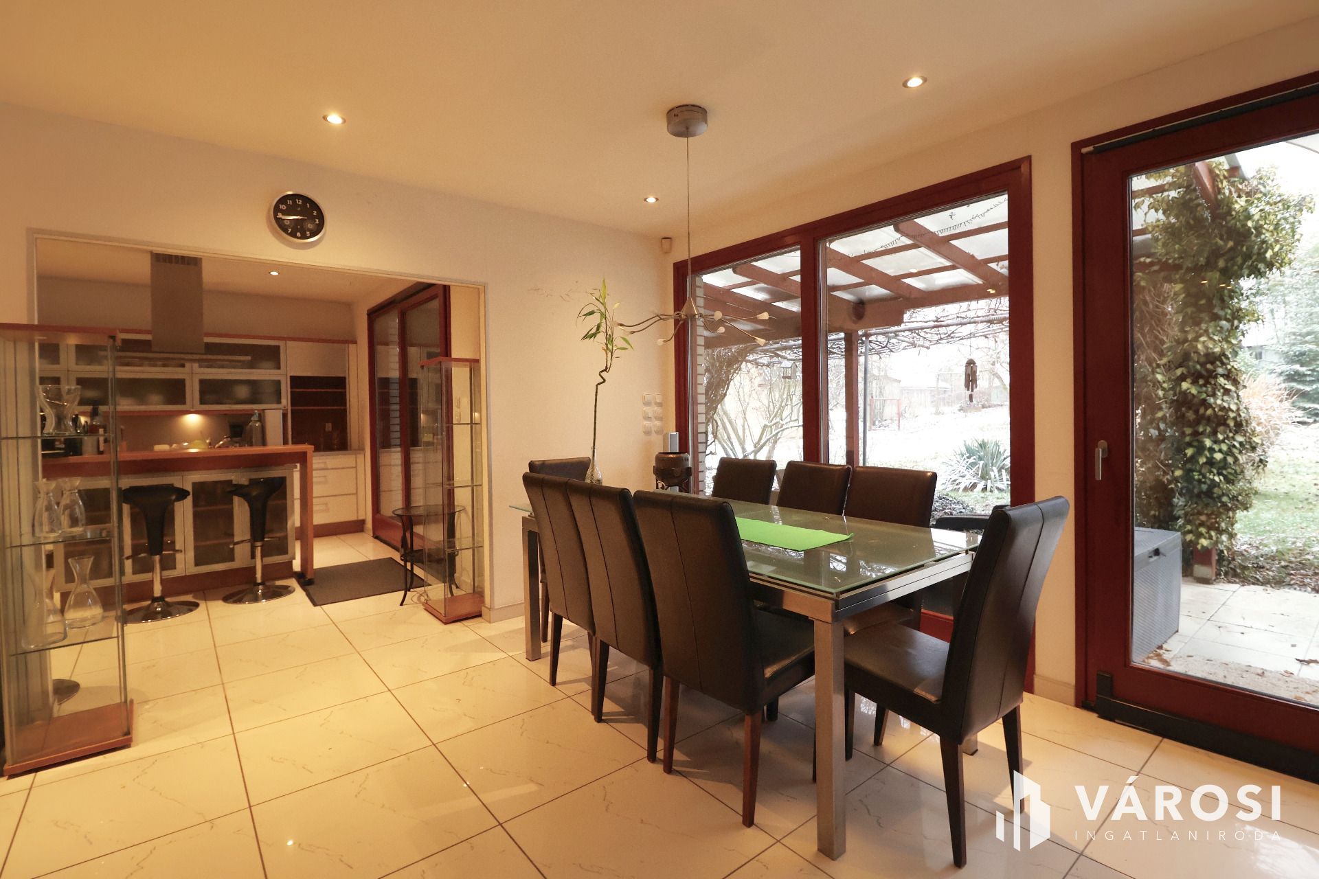 The ~58.00 m2 covered, paved terrace - with an outdoor barbecue - increases the usability of the living space. The two-car garage is ~44.00 m2. Central heating is provided by a Buderus Logano G 124 boiler - with reduced harmful emissions, fully automatic operation.