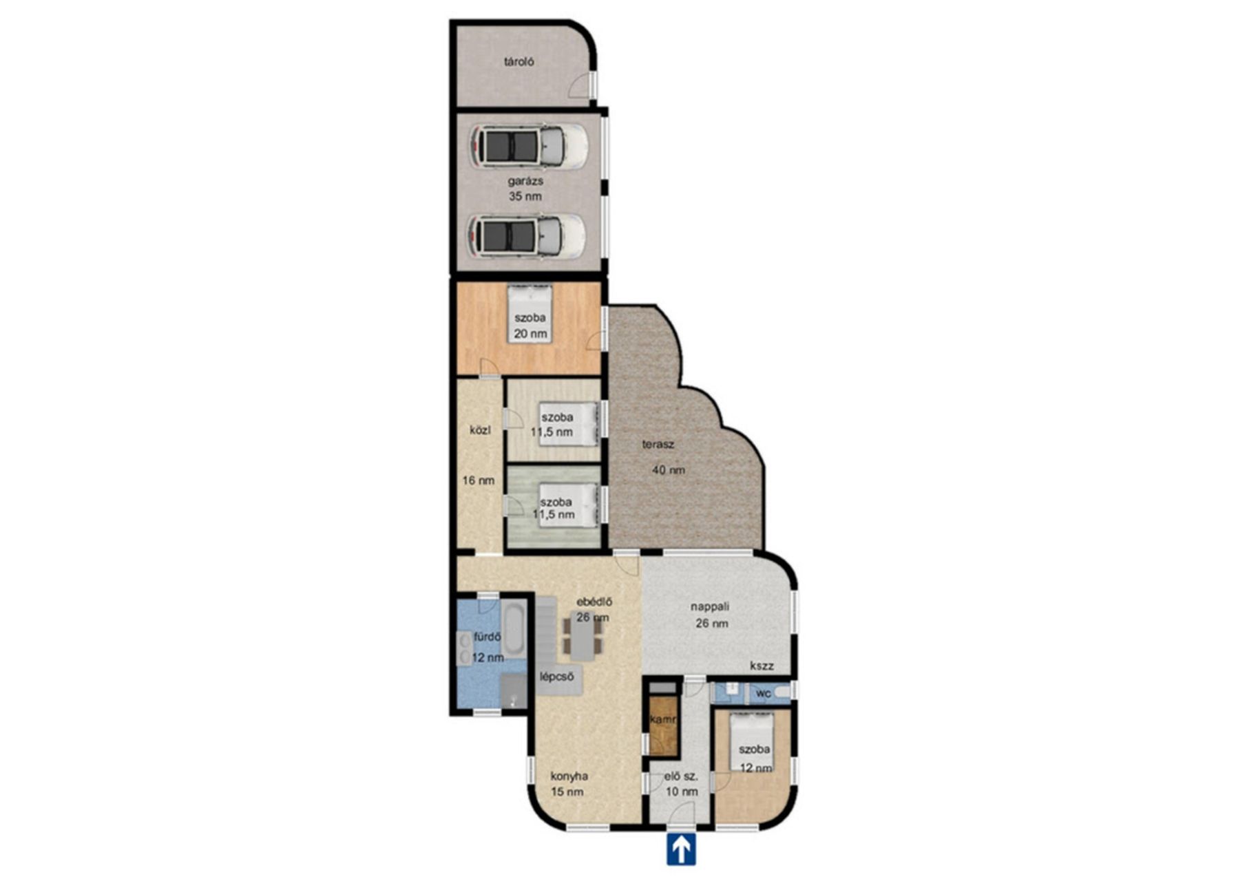 - 40 nm-es tetőtér beépítés, ami további lakótér kialakítására alkalmas.