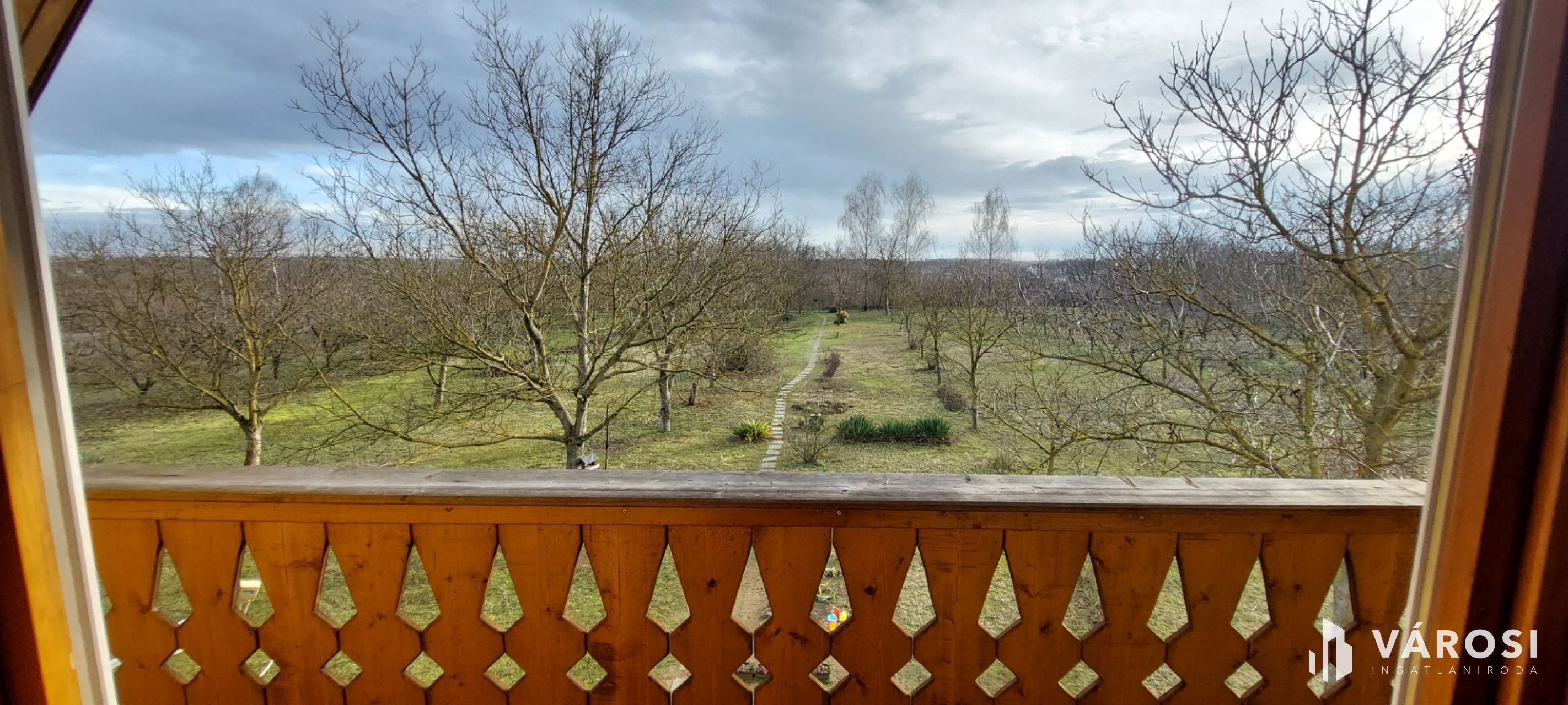 Földszint: tágas nappali–étkező galériás légtérrel, 3 különnyíló hálószoba, konyha + kamra, fürdőszoba, külön WC, közlekedő, kazánház. Déli tájolású, zárt terasz / télikert, ahonnan 3 irányban nyílik kilátás a parkosított kertre
