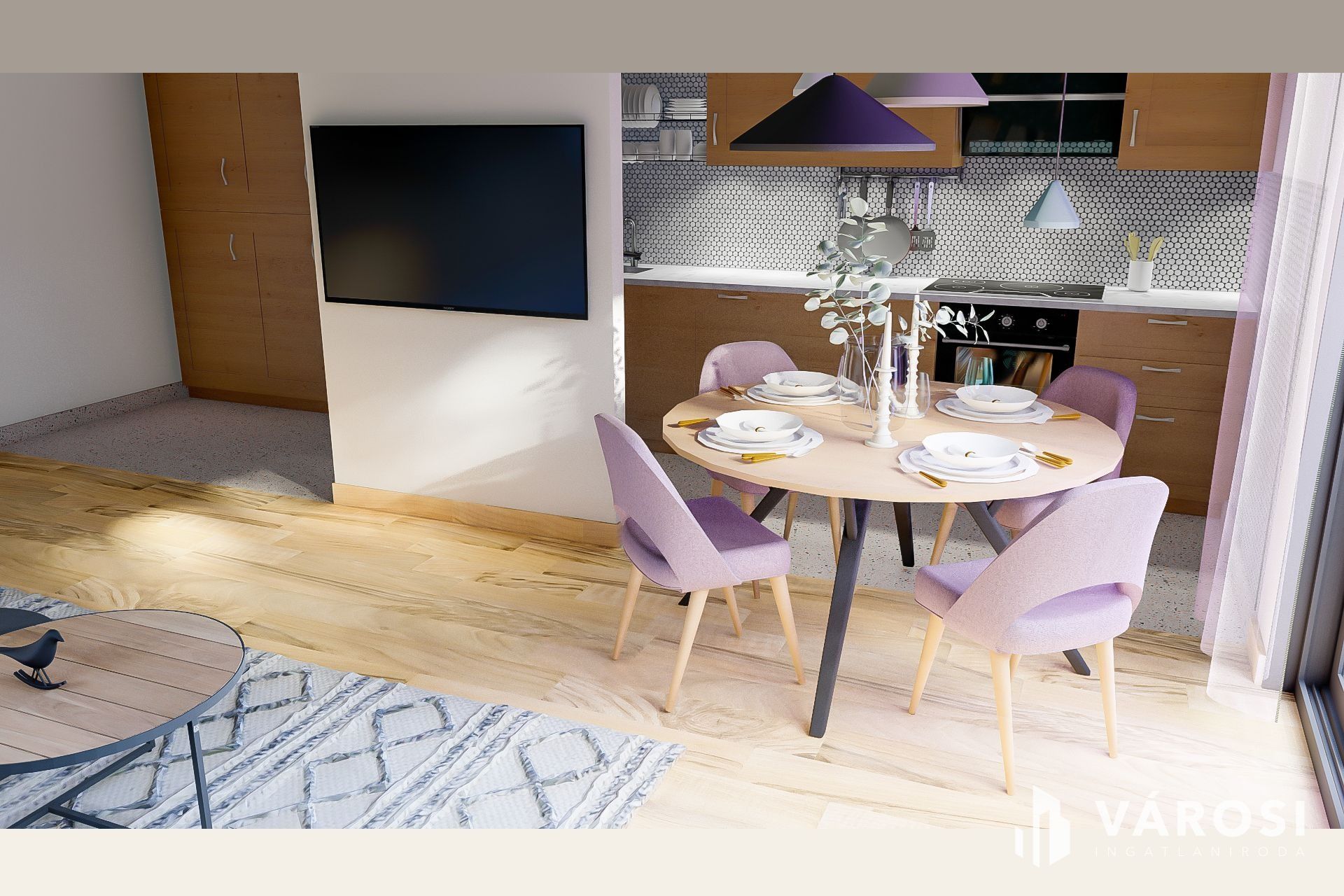 • Amerikai konyhás nappali, 3 db. hálószoba, fürdőszoba, wc.