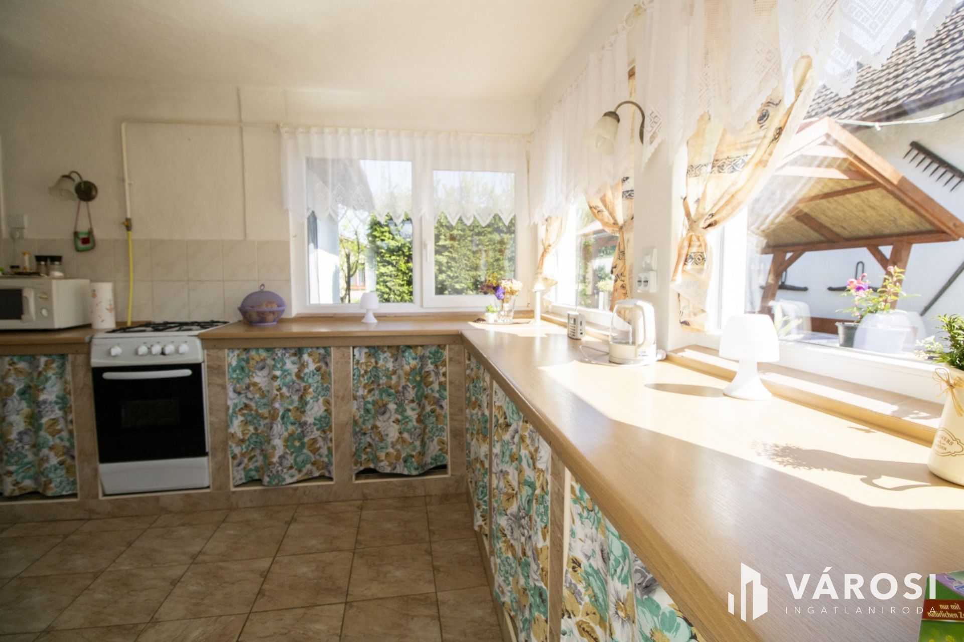 A belső tér elrendezése praktikus és élhető: két hálószoba, egy nappali, konyha-étkező, zuhanyzós fürdőszoba és kamra helyiségek kerültek kialakításra. A konyha-étkező világos, teli ablakos, kellemes életteret biztosít, az ingatlan egészére jellemző a rendezett, gondozott állapot.